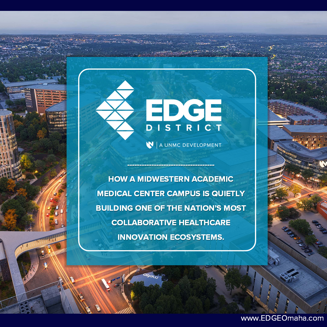 Anchored by UNMC, the EDGE District is transforming underutilized industrial land into a vibrant, mixed-use ecosystem where academic resources, industry partners, and entrepreneurs converge to solve the world’s most pressing healthcare challenges.